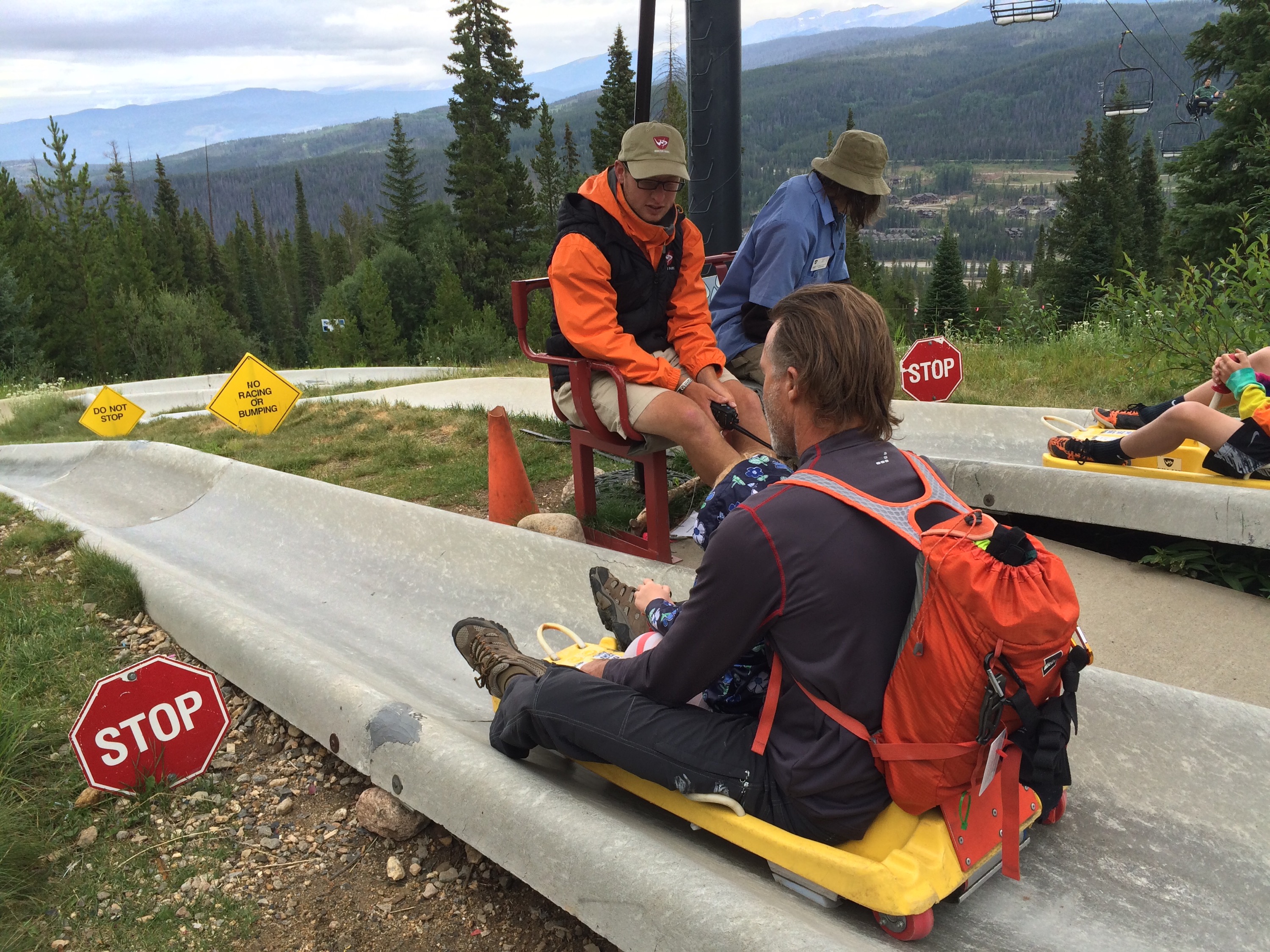 The last seven days have past with a downhill pace! We returned to Winter Park and our same condo on August 1st. Kerrie and Skylar joined us on the 4th and the Derkits’ train rolled in on Aug 6th. There’s been an adventure of one sort or another for everyone. Cross country trail biking was the first order of business for James, Laura, Kerrie and Des. Everyone loved the Creekside trail. Jen hiked with the kiddos and searched for moose, but no luck. Next up was the 22 mile Winter park to Granby ride for Laura, Kerrie and Jen. Questionable navigation put them at the top of a semi downhill trail in Grand Bike Park but they managed the rocks and narrow fast course and finished strong! Des and Kai led James on full downhill biking the following day. James did awesome and got a few breathless thrills. Kai had his best runs of the summer and was super happy. Eli and Skylar loved the alpine slide and climbing wall.