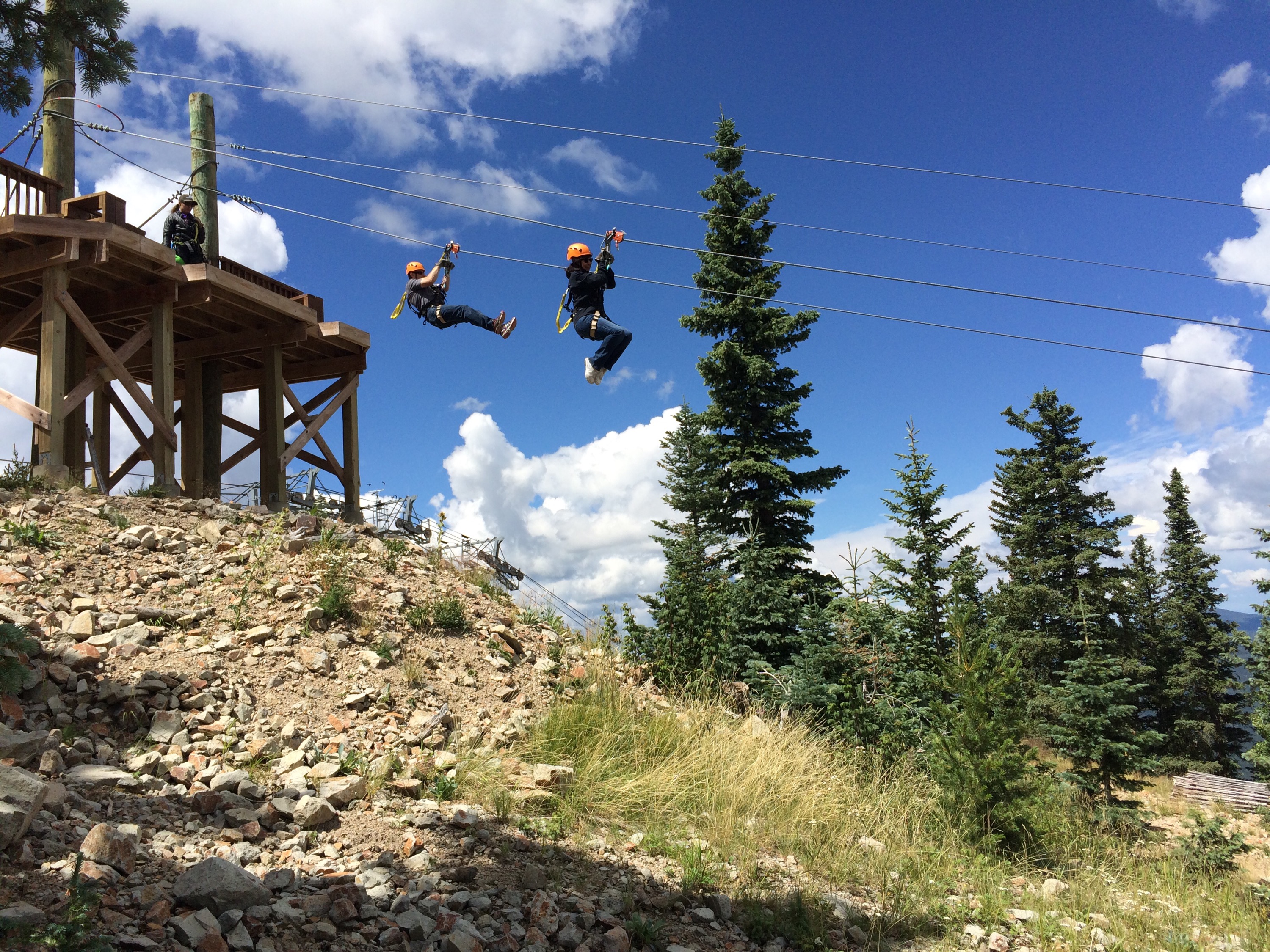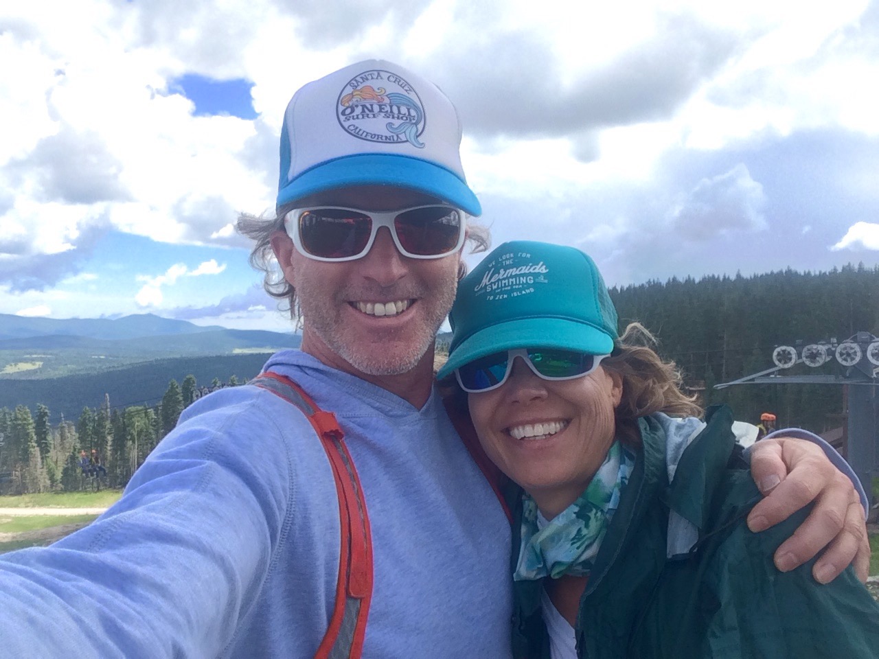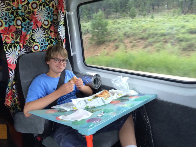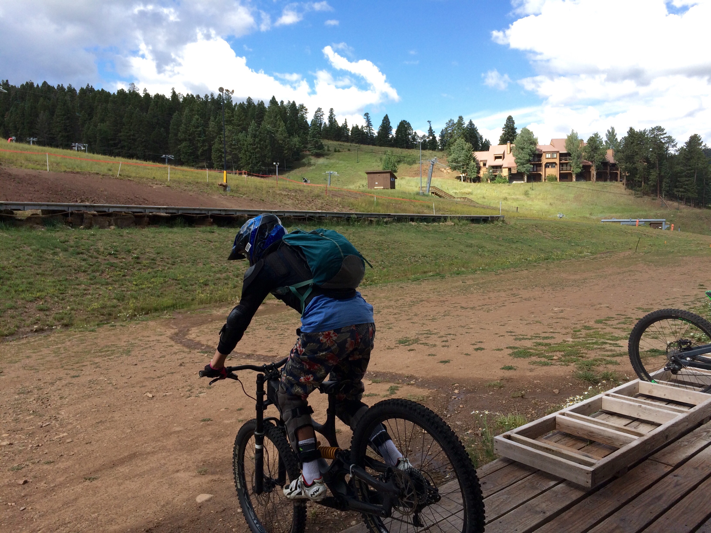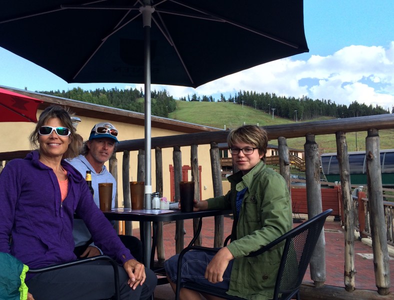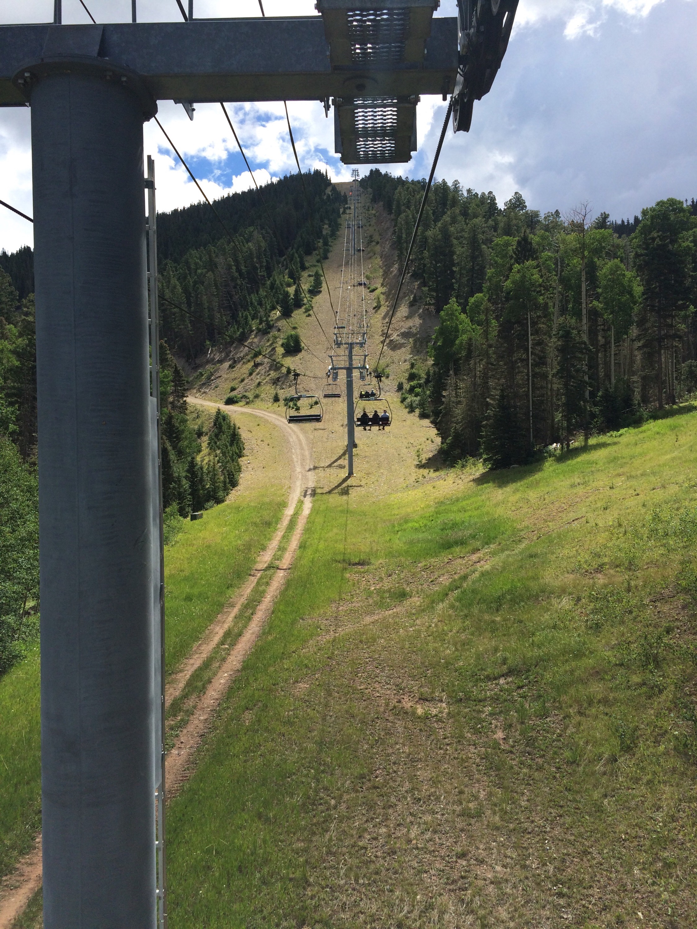 It was hard to leave the mountains…so we didn’t! After stopping over in Colorado Springs, we detoured to Angel Fire Resort NM on our way south. New Mexico is lush this time of year. I think it’s their monsoon season. Kai connected with Natalie, an instructor at the resort, and explored the downhill trails without Des. He had a great time and said the red dirt was really smooth but fast. The lift up to the mountain top to 10,600 feet was more of a thrill than we expected. Rain shut out our hopes of riding the zip line but I included pics below. We will come again so Des can ride down the big Trestle at the top- also added video of this below. This area near Taos was quite beautiful. We drove through a thunderstorm on the departure. It hailed of course!