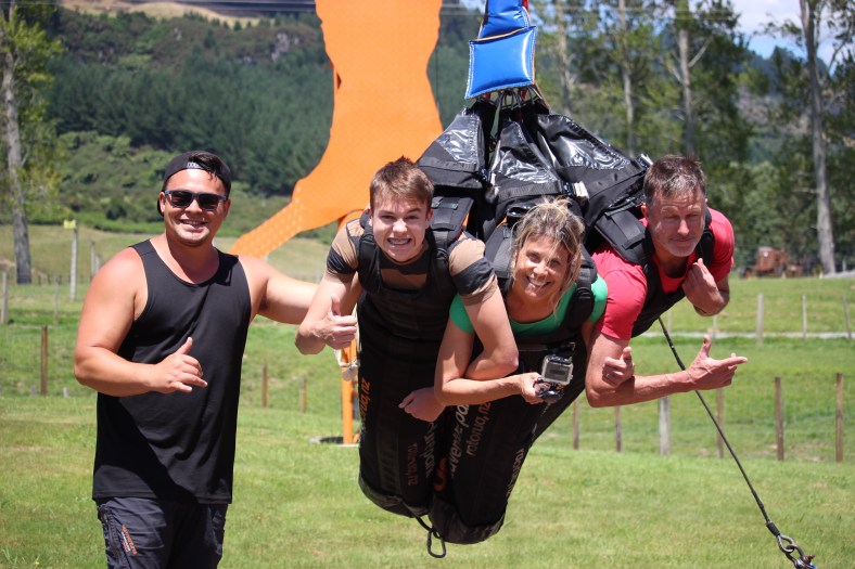 Rotorua is adventure central for the North Island. While the thermal pools and Redwoods are the star attractions, there’s plenty of adrenaline pumping action too. A big draw is the “Ogo”, a huge plastic ball half filed with water that rolls you and a buddy zigzagging down a hill. We didn’t do that, we like our teeth inside our head. Bungee jumping- we will wait for a better view. But The Swoop! Kai and Des said “yes!” And Jen said “absolutely not doing that.”