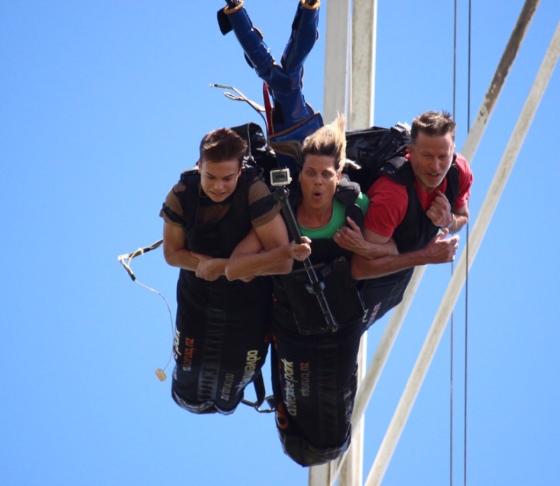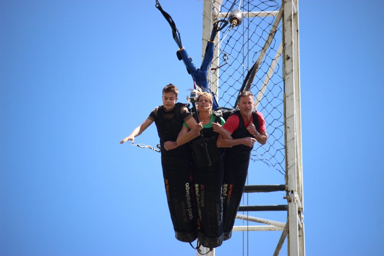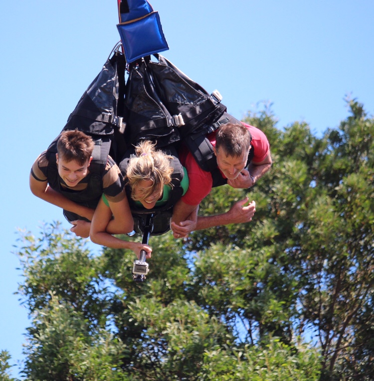 Kai pulled the rip cord at the top and away we went. All good. The drop was a super rush and the swinging part was actually pleasant. The video is awesome but too hi def to add here.