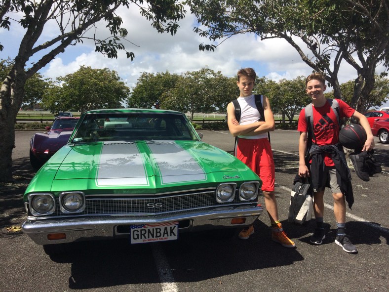 Kai and his new Kiwi buddy checked out some of the cars and the Texas BBQ truck outside the main basketball stadium after school. The owner of the new BBQ company wanted my critique as a real Texan. I told him “more spice, more sauce!”