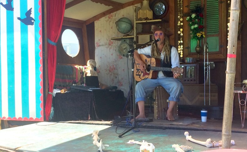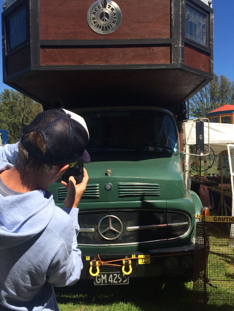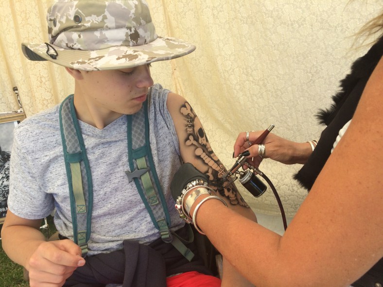 On Saturday we happened upon the Extravaganza Fair. Gypsy meets music fair meets steampunk! Kai designed a silk screen hat and air brushed his arm with skulls. The traveling trailers are out of this world.